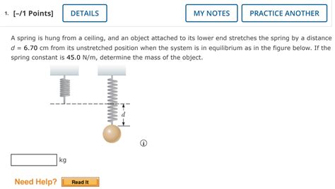 The problem is as follows: Web a spring is hung from the ceiling. When a block is attached to its end, it stretches 2.0 cm before reaching its new equilibrium. When released from rest, the block. A spring is hung from a ceiling, and an object attached to its lower end stretches the spring by a distance d = 4.90 cm from. Web a spring is hung from the ceiling. Web a spring is hung from the ceiling. A spring is hung from the ceiling. A 0.382 − kg block is then attached to the free end of the spring. Web a spring is hung from the ceiling.
