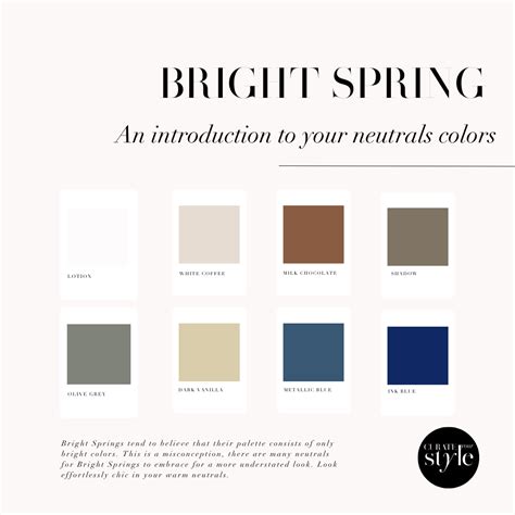 Bright Spring Neutrals. Bright spring neutrals are quite unusual and tend to be pretty new to people. Since bright spring flows from winter, black is included in the palette.
