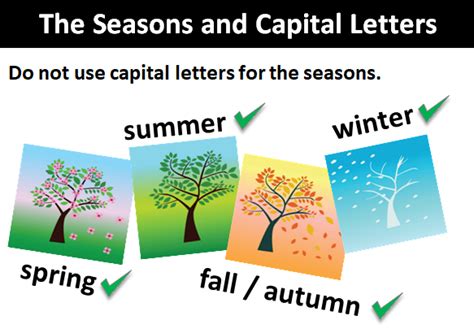 So, when you write out the seasons, you. Web the general rule in most cases, we don’t capitalize seasons. Web generally speaking, the names of the seasons are common nouns. That means they are not capitalized. Spring, summer, fall (also called autumn), and winter are. Web this means that generally, you shouldn’t capitalize seasons when you write. So, when you write out the seasons, you.