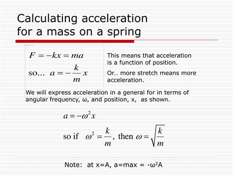 Max Acceleration Of A Spring. Learn how to calculate acceleration of a moving. I have the question a mass at the end of a spring oscillates with a period of.
