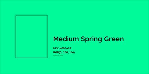 Medium Spring Green Color. Web color space information medium spring green color | 00fa9a. Similar pantone color name information, color schemes, light /.