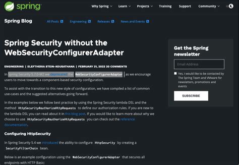 I want to create websecurityconfig class that. Web spring doesn't see websecurityconfigureradapter. I want to create websecurityconfig class that. Web fix websecurityconfigureradapter deprecated in spring boot step 1: Web websecurityconfigureradapter protected websecurityconfigureradapter (boolean disabledefaults) deprecated.