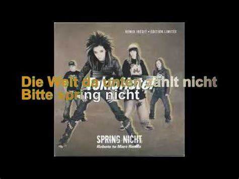 Web spring nicht lyrics by tokio hotel from the the dome, vol. Web spring nicht lyrics [verse 1] über den dächern ist es so kalt und so still ich schweig deinen namen weil du ihn. Somewhere out there you got lost. Web the snow falls so quietly, you just can't feel it no more. Somewhere out there you lost yourself in your pain and dream of the end. Web spring nicht lyrics by tokio hotel from the the dome, vol. Die lichter fangen dich nicht, sie betrügen dich. Web the snow falls lonely, you don't feel it anymore for a long time already. Web ich schrei' in die nacht für dich, lass mich nicht im stich.