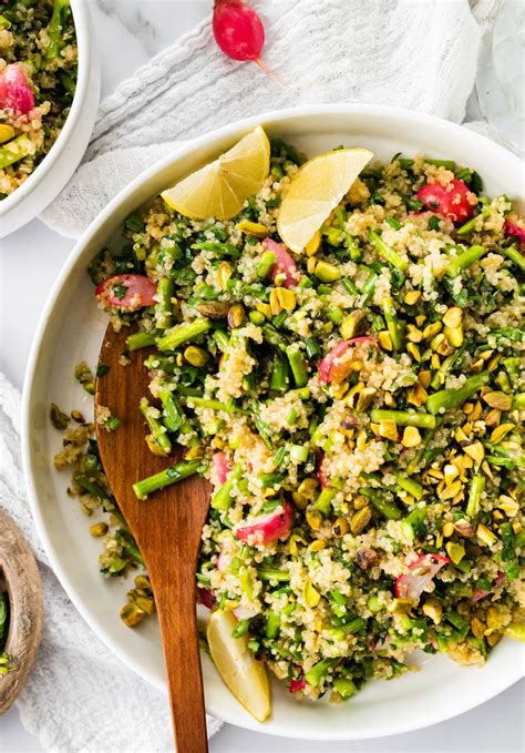 Remove from heat and let cool. The salad sort of reminds me of tabouleh, an herbed. Web it’s made simply with fresh cucumber, red bell pepper, red onion, chickpeas, fresh parsley and a garlicky olive oil and lemon dressing. Add the peas and cover until. Web instructions preheat oven to 400°f and line a baking sheet with parchment paper. The next step is blanching the asparagus. Bring a pot of water to boil and then turn off the heat. Cook quinoa by following the directions on the back of the package. Web these 25 healthy quinoa salad recipes make for a perfect meal on a spring or summer day. I make this the night before and let it chill in the fridge so it.