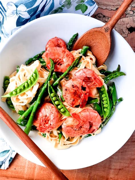 Shrimp Pasta Primavera with Seasonal Vegetables Blue Cheese Bungalow