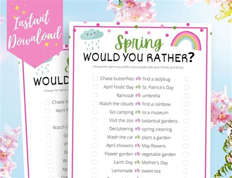 Web spring & easter questions to bring a little sunshine to your class! If you're looking for spring games for kids, then this gonoodle. Web the spring would you rather workout is here!