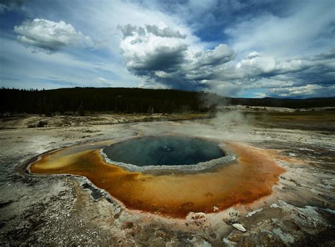 Hot Spring sky trees Yellowstone National Park Grand Prismatic Spring